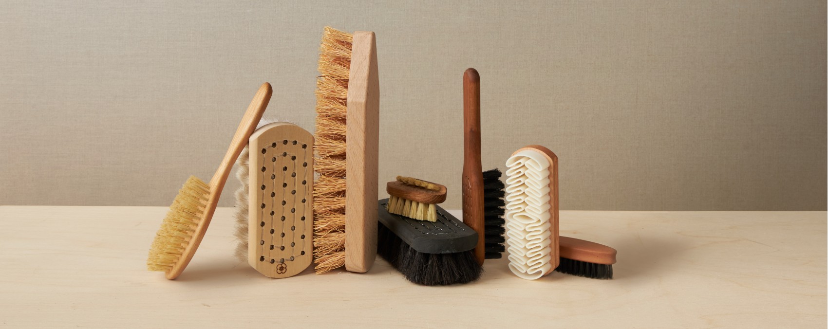 A handsome hand brush with an oiled beechwood turned-wood handle with leather hanging loop, and a thick head of split horsehair fibres. Split horsehair is especially soft and therefore ideal to sweep fine dust. Horsehair is great for cleaning and sweeping. This natural fibre does not create a static..